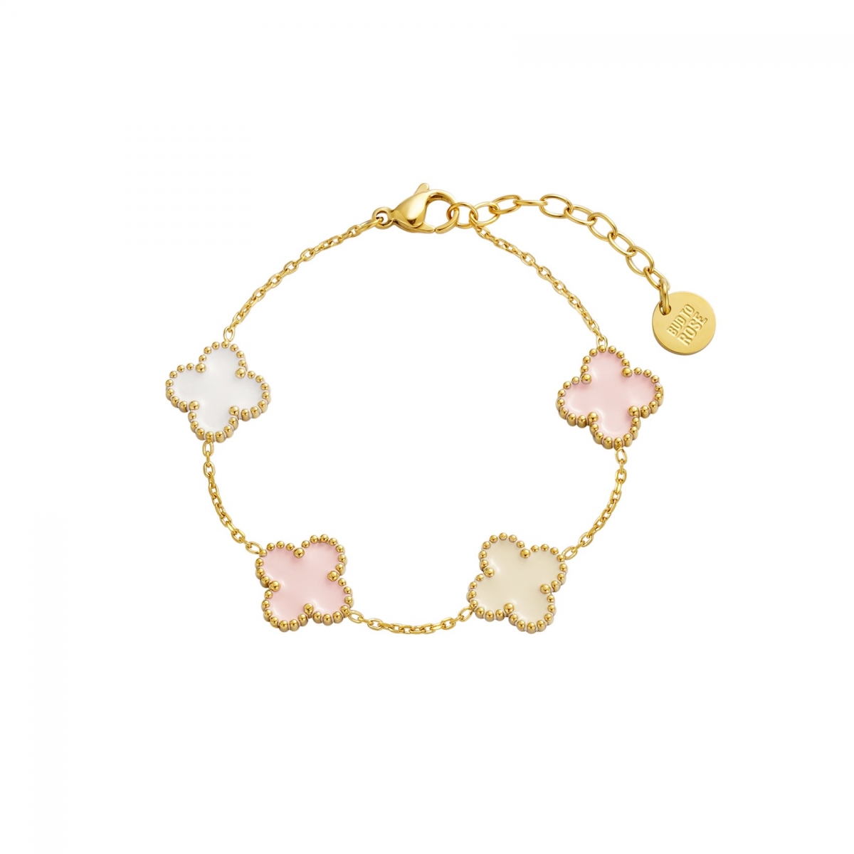 Clover Bracelet i guld med rosa, vit och ivory emalj