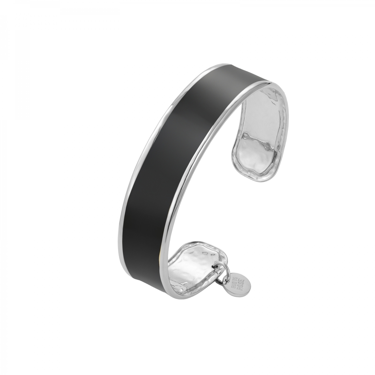 Envy Bangle är ett stelt armband med en bred yta i svart emalj.