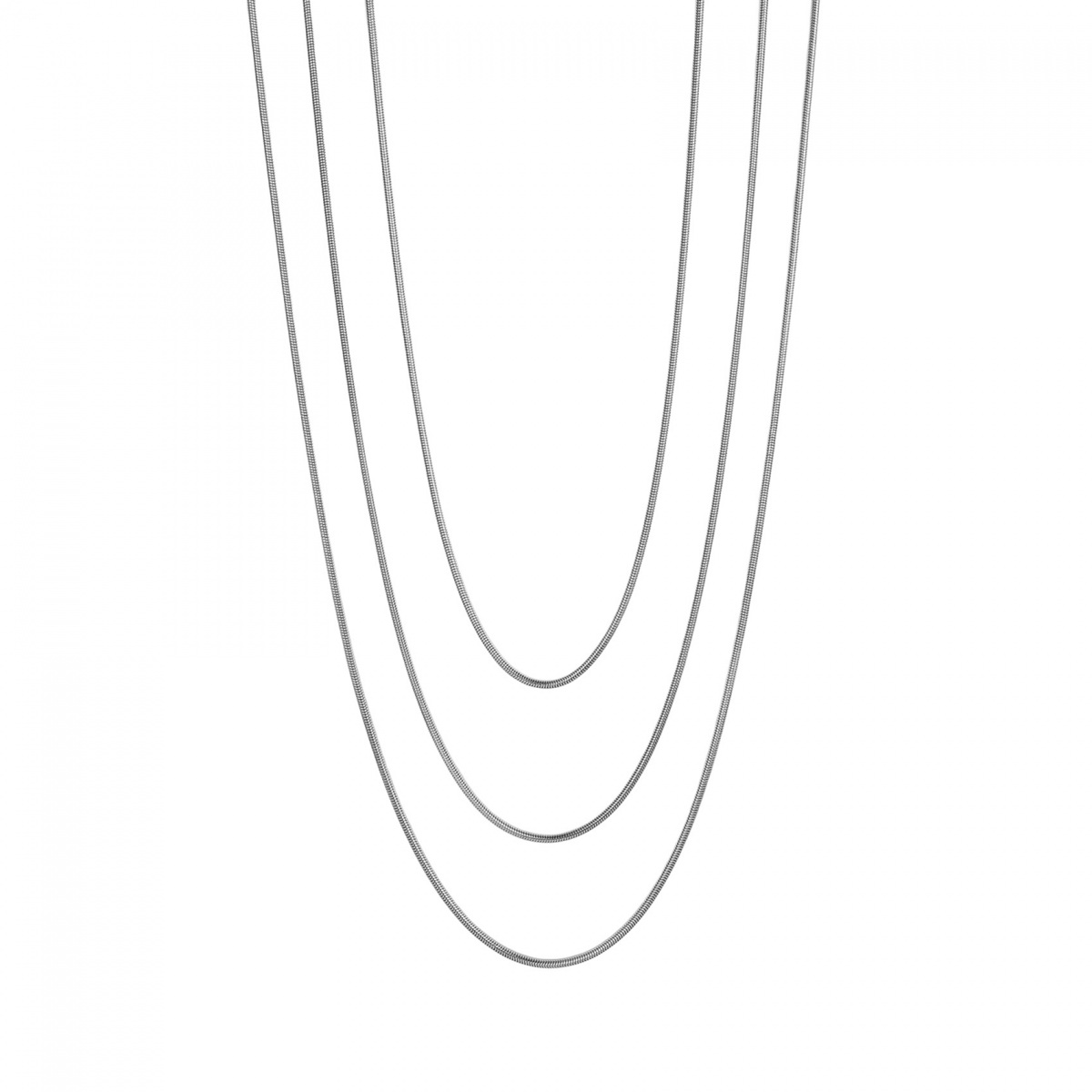 Tre kedjor i ett – detta stilrena halsband med mjuka ormkedjor skapar en perfekt lager-på-lager-look i ett enda smycke. Enkelt att styla och perfekt för både vardag och fest. Den följsamma designen ger ett lyxigt och modernt uttryck.