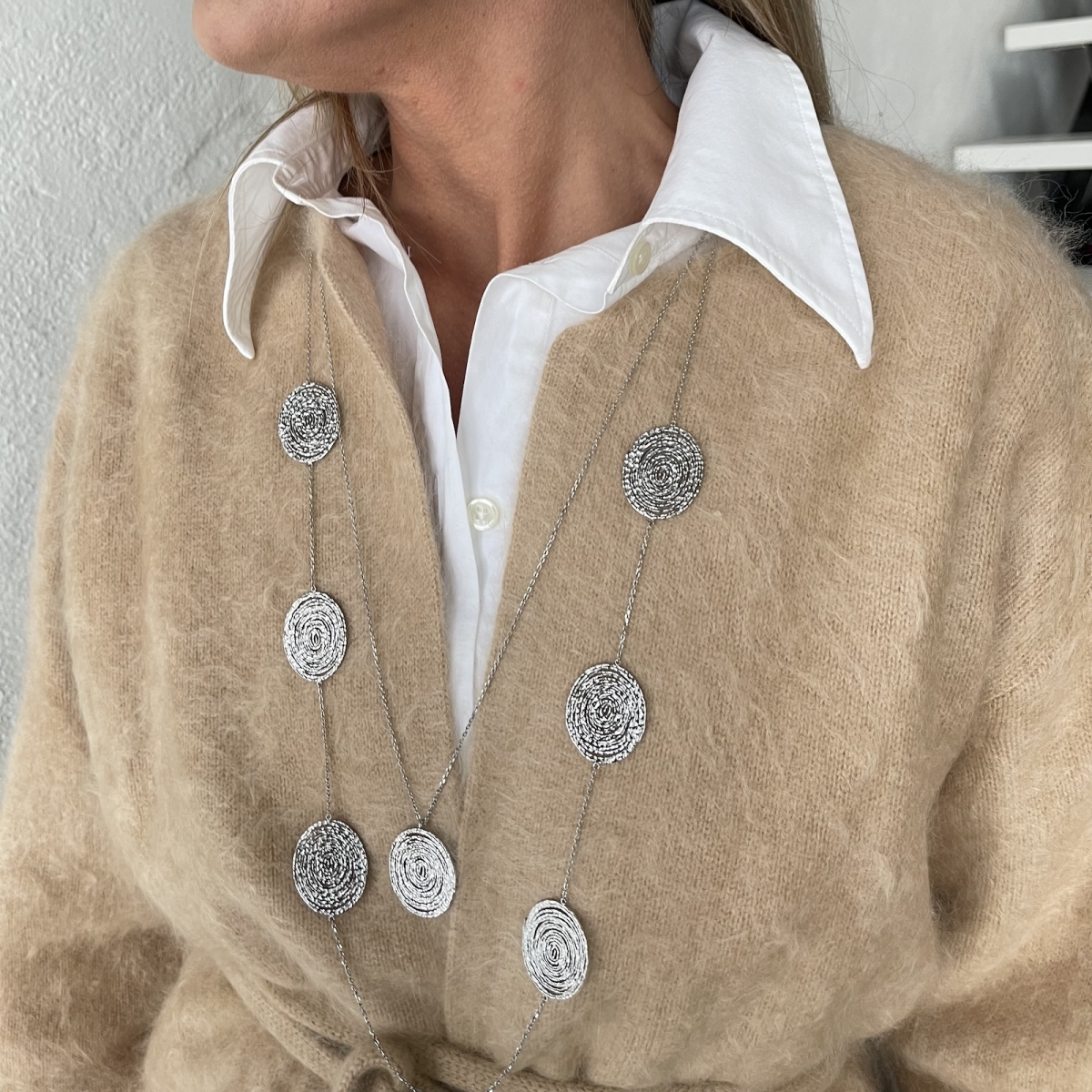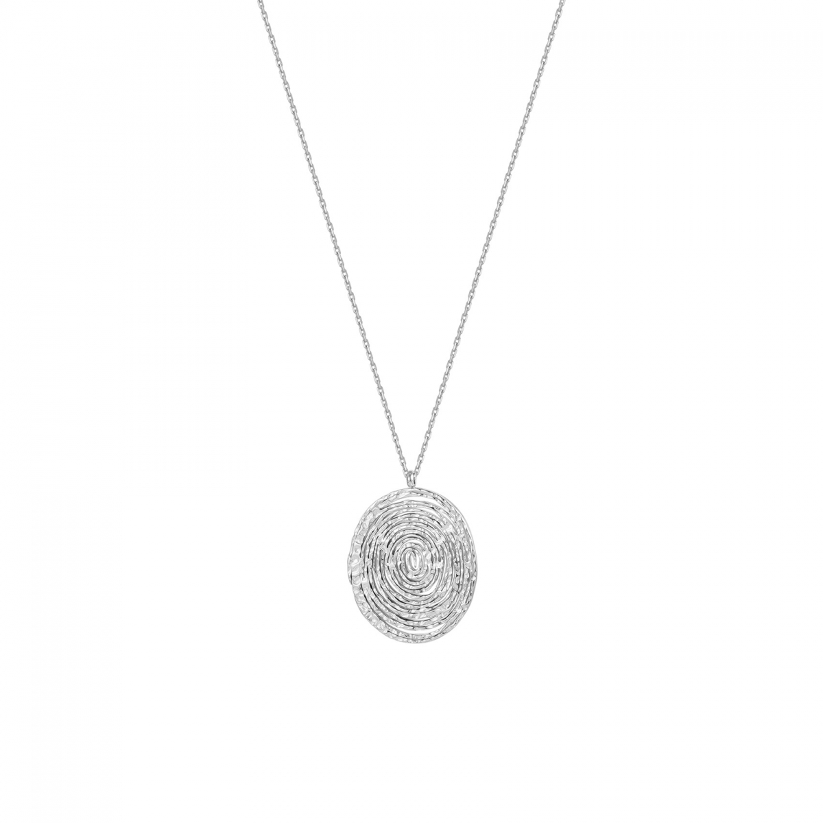 Ett mycket lätt halsband med en tunn, hamrad platta som reflekterar ljuset på ett snyggt sätt. Perfekt att bära solo eller tillsammans med andra halsband för en trendig layering-look.