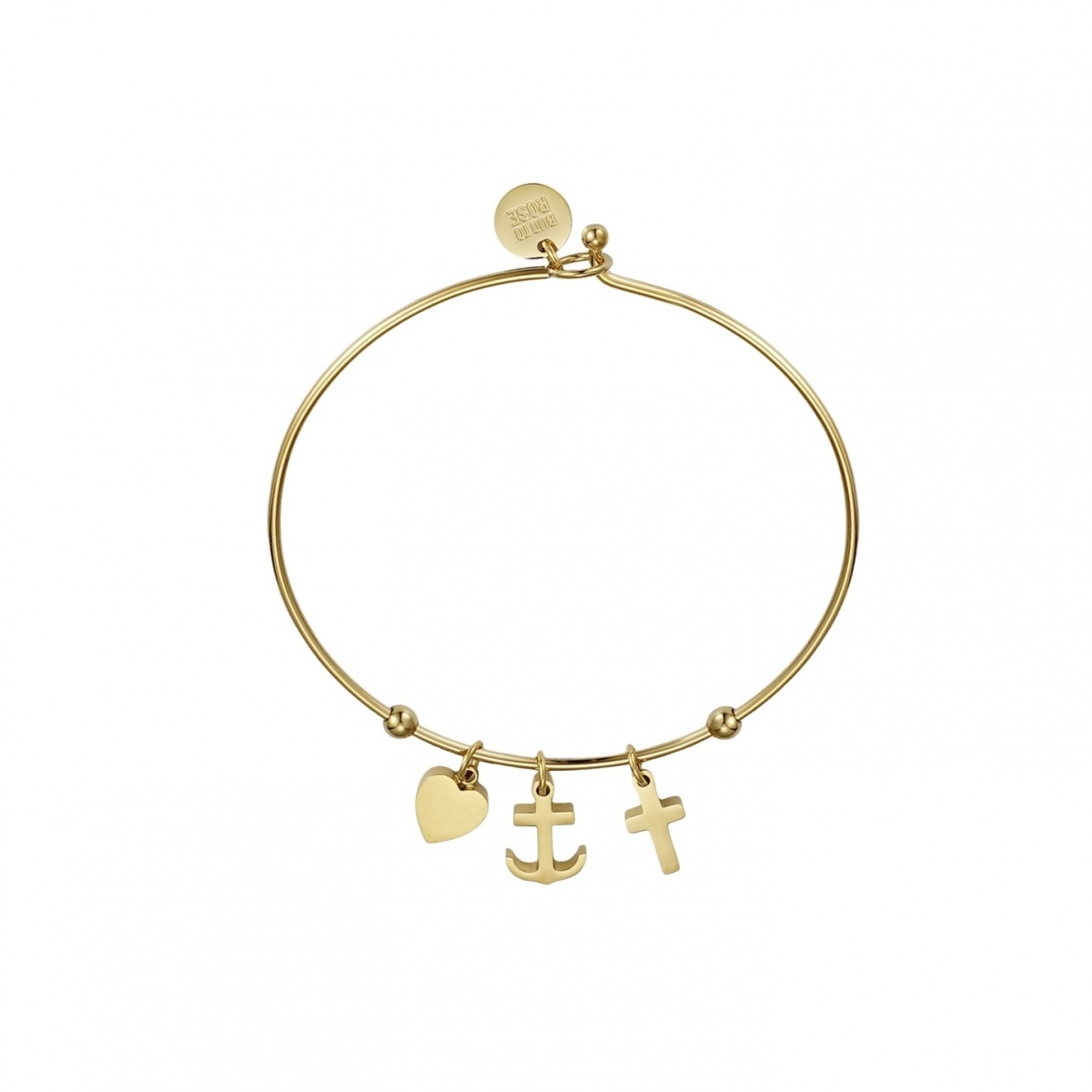 Ett stilrent armband med tre symboliska berlocker – tro, hopp och kärlek. En tidlös design som bär på en fin mening och gör smycket både personligt och betydelsefullt.