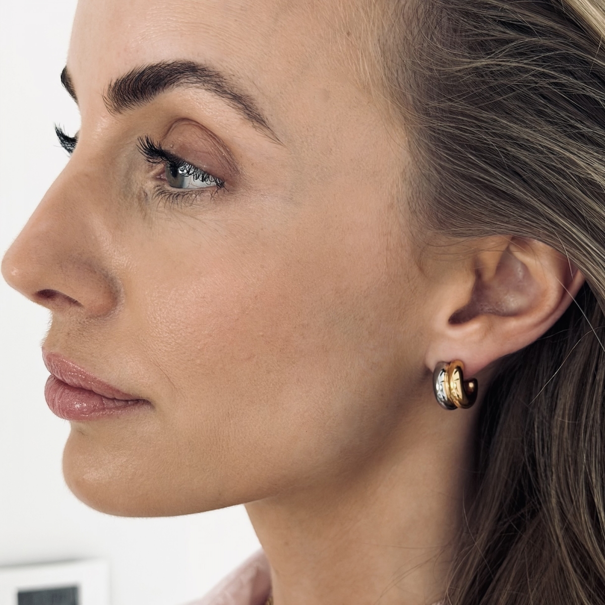 Stilrena hoop-örhängen i en mix av både guld och silver – perfekta för varje dag och enkla att styla!